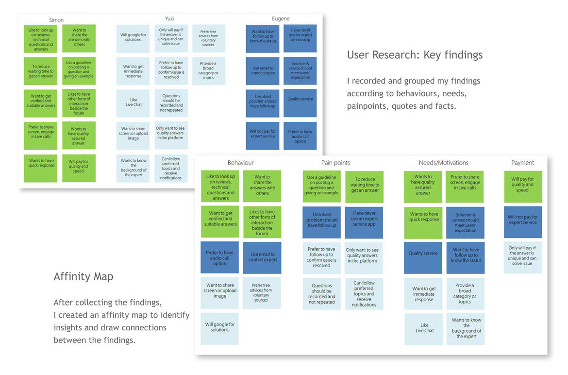 Insights based on affinity mapping- People will generally look for free help on the internet before considering a paid service.