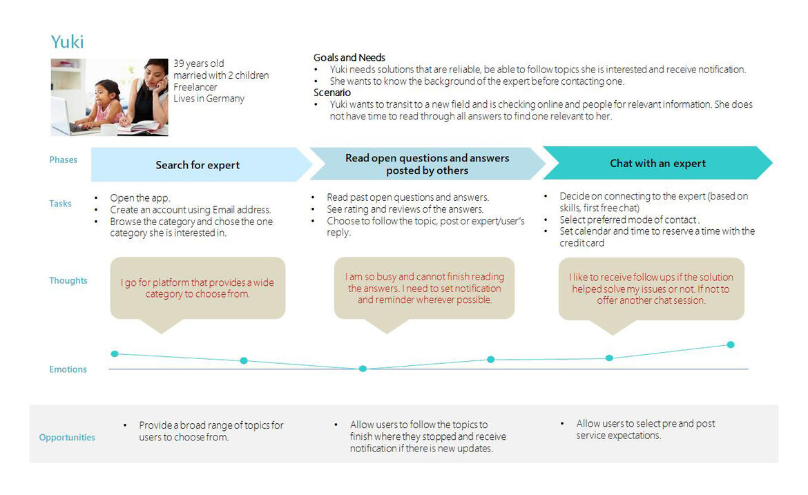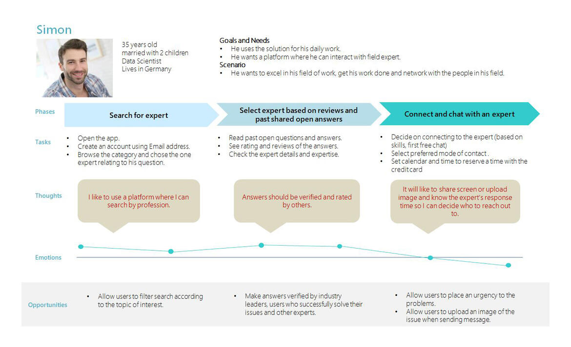After creating the personas, visualising the process the users go through help me to know where the users’ needs are met and focuses on what the user needs to accomplish the goal.