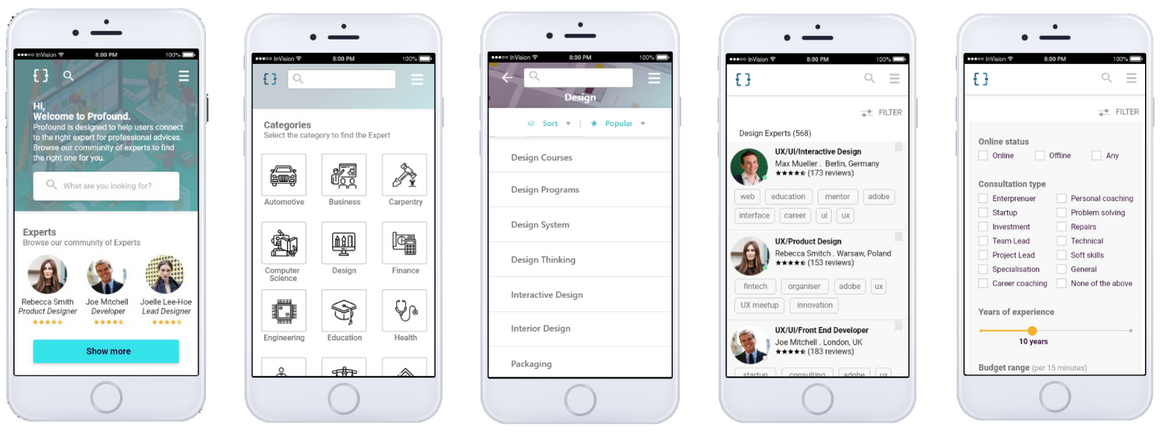 ProFound is an expert app that provide users with expertise advice in nearly any field. Whether it is an interior design solution or a technical question for a professional mechanic, users can feel more informed and more prepared to face their everyday (and not-so-everyday) problems.