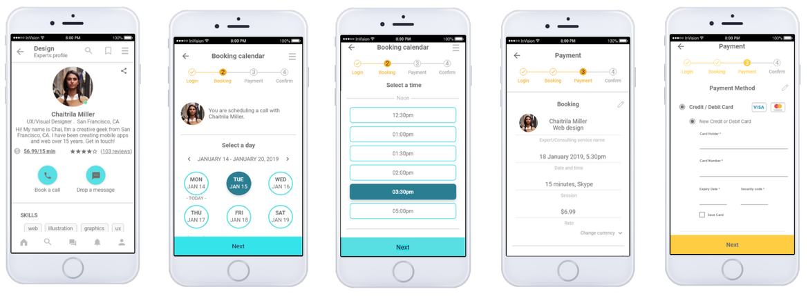 - easy steps to make a call booking,we will help users to find the expert list that matches best to their requirement. As a result, users will know the profile and contribution of the experts to decide who to reach out to to schedule a short video session over the platform.